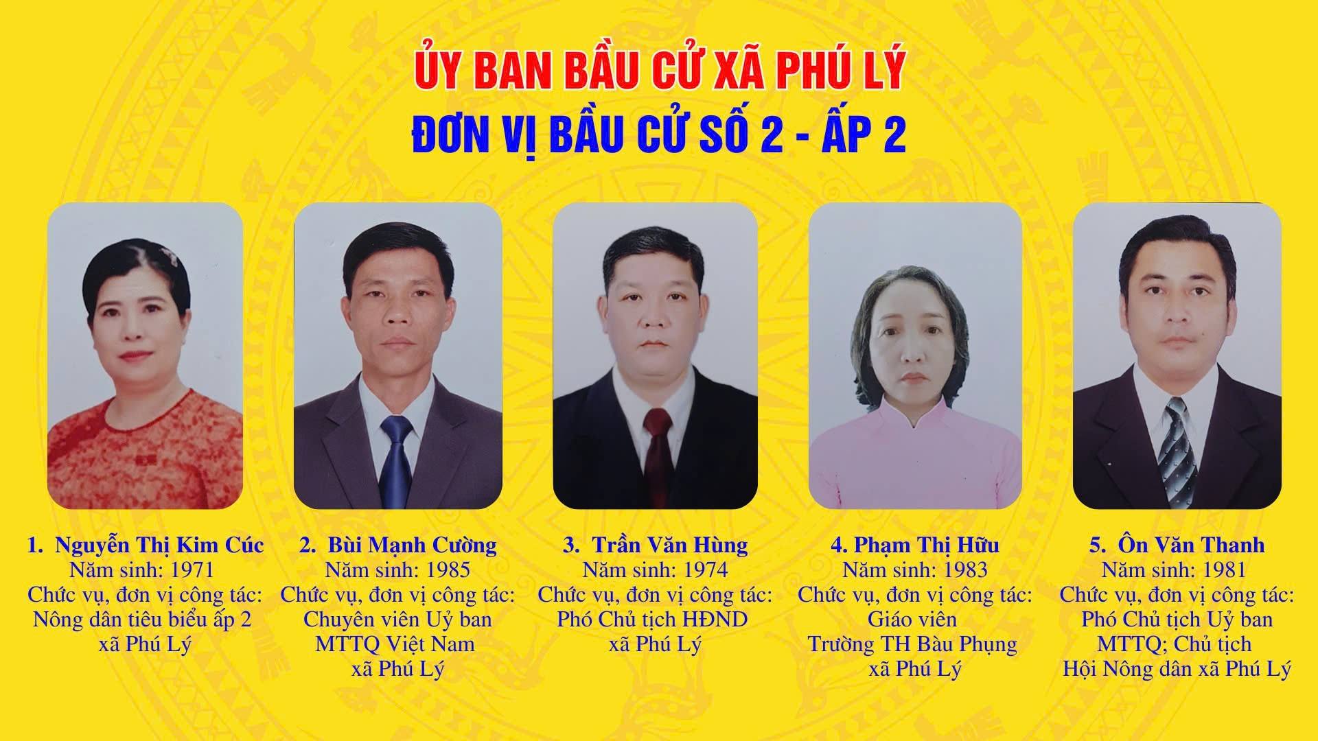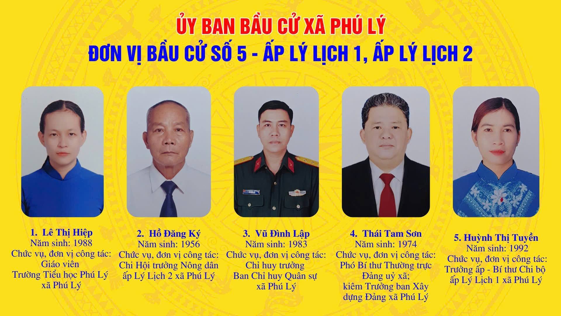Ngày 25/02/2026, Ủy ban bầu cử xã Phú Lý ban hành Nghị quyết số 01/NQ-UBBC Công bố danh sách chính thức những người ứng cử Đại biểu Hội đồng nhân dân xã Phú Lý khóa XIII, nhiệm kỳ 2026 – 2031 tại 6 đơn vị bầu cử trên địa bàn xã Phú Lý, như sau: