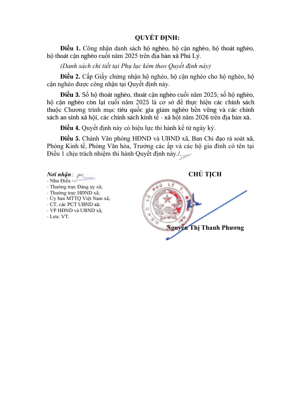 quyết định công nhận hộ nghèo, cận nghèo